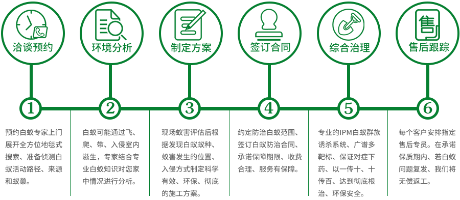 IPM引誘―――以白蟻喜食的物質(zhì)作基本材料,加上引誘劑,抑長劑,將白蟻引進到引誘箱內(nèi)取食,設置引誘箱15~20天內(nèi),巢內(nèi)90%的白蟻都能進到引誘箱內(nèi)將帶慢性傳染的藥物帶回去。15~20天后再進行第二次開箱,施噴高效傳染的白蟻藥物,再過七天后可保證100%的折蟻死亡,防治效果保證滿意。